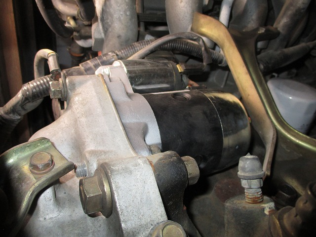エンジンの掛かり具合が悪いってことで、点検したところ、どうもセルモーターの元気が無いので交換することにしました。
