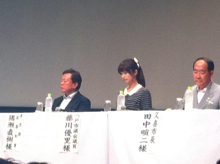 内容は、東日本大震災を被災してから1年数ヶ月を受けた日本国民が、「今何を出来るか、これから何をして行かなければならないのか」をパネラーで、東京都副都知事の猪瀬直樹氏・八戸市議会議員の藤川優里氏・久喜市長の田中暄二氏の三名をお呼びし、パネルディスカッションで行われました。