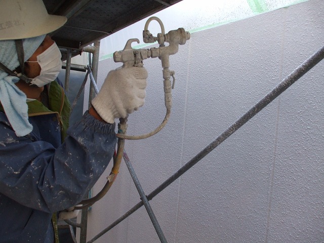 トップコートは吹付で行ったり、ハケ・ローラーなどで行います。