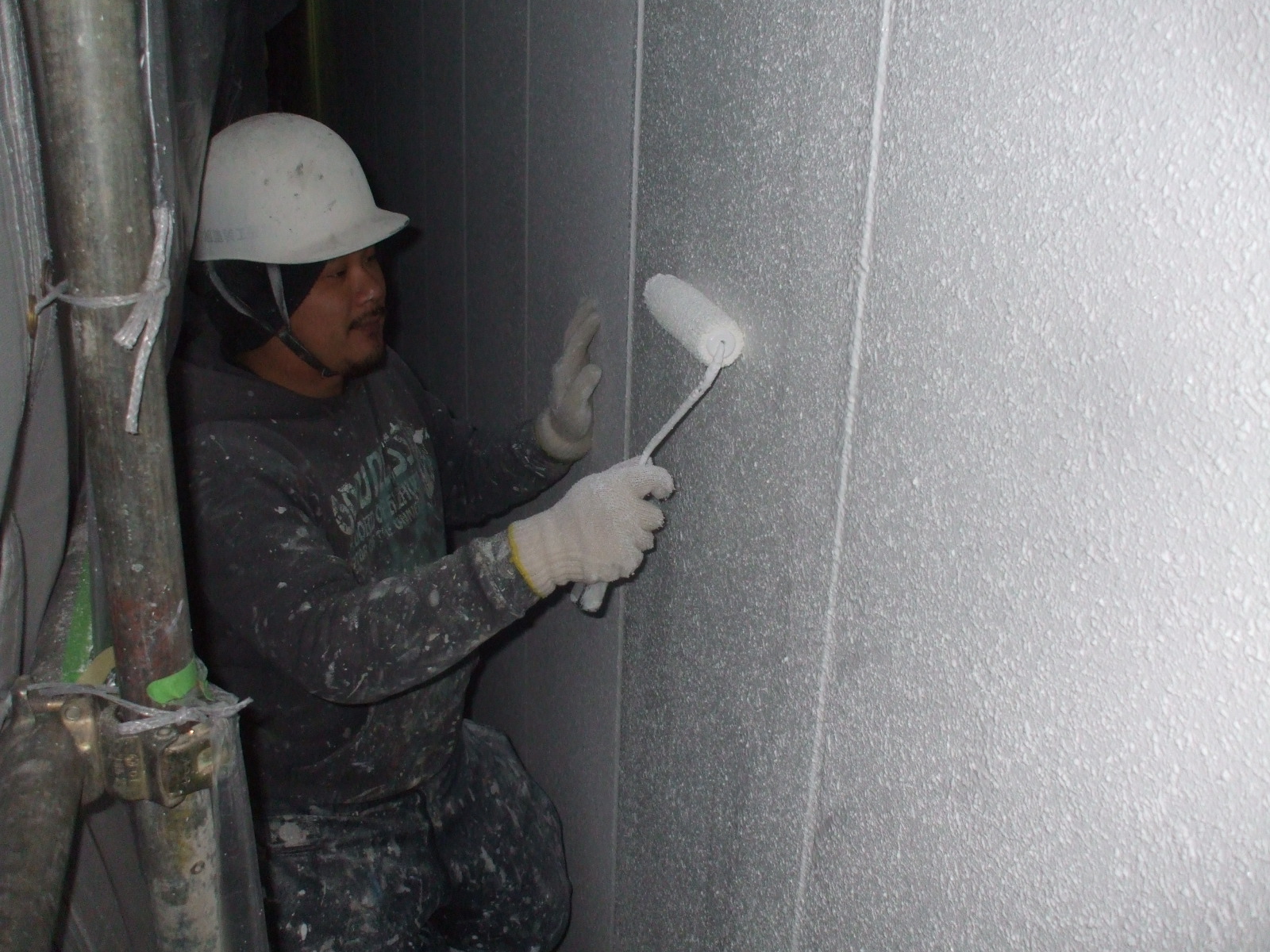 吹付をし終わった後に下の写真のようにトップコートを2回塗装して完了となります。